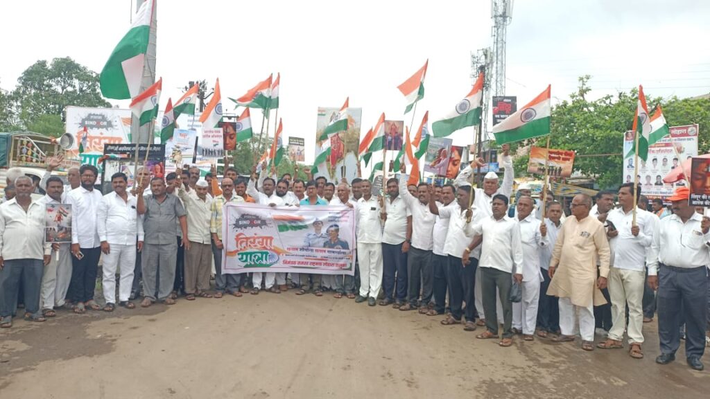 भारतीय सैन्याने ऑपरेशन सिंदूरच्या माध्यमातून पाकिस्तानचे कंबरडे मोडले. भारतीय सैन्याच्या या शौर्याचा सन्मान करण्यासाठी रविवारी (दि.२५) लोहारा शहरात भारत माता मंदिर ते तहसील कार्यालय दरम्यान तिरंगा यात्रा काढण्यात आली. या पायी यात्रेमध्ये लोहारा शहर व तालुक्यातील माजी सैनिक, प्रतिष्ठित नागरिक, विद्यार्थी मोठ्या संख्येने सहभागी झाले होते. यावेळी भारत माता की जय, वंदे मातरम् अशा घोषणा देण्यात आल्या. ही पायी यात्रा तहसील कार्याजवळ आल्यानंतर माजी सैनिक राजेंद्र सुर्यवंशी, सुधीर पाटील, रमेश ठेले, महादेव सलगर, प्रकाश मुळे, शिवाजी मुलगे, चंद्रकांत थोरात, अजय जाधव, इंद्रजित सुर्यवंशी, दिलीप पवार यांचा सत्कार करण्यात आला. या तिरंगा यात्रेत शिवशंकर हत्तरगे, जगन्नाथ पाटील, शामसुंदर तोरकडे, अमिन सुंबेकर, राजेंद्र पाटील, दगडु तिगाडे, अविनाश माळी, प्रशांत काळे, दिपक मुळे, नेताजी शिंदे, विक्रांत संगशेट्टी, अनिल ओवांडकर, इकबाल मुल्ला,